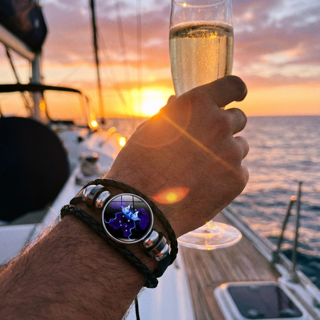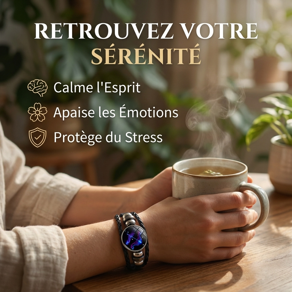 Le Bracelet Apollo™ diffuse des fréquences vibratoires directement à travers les points de pulsation du poignet, contournant les blocages du mental analytique.